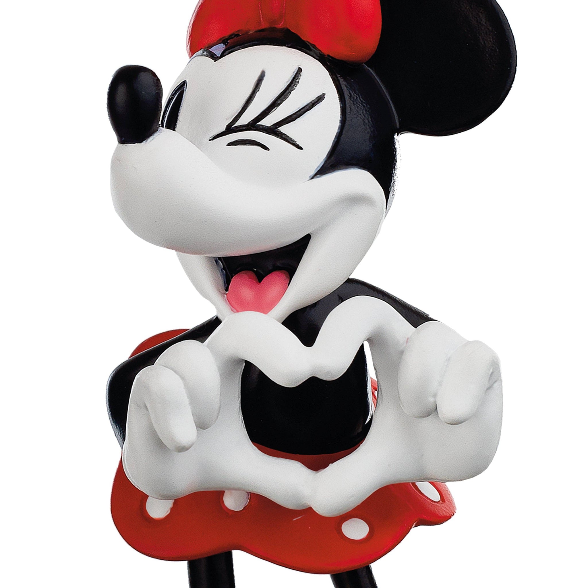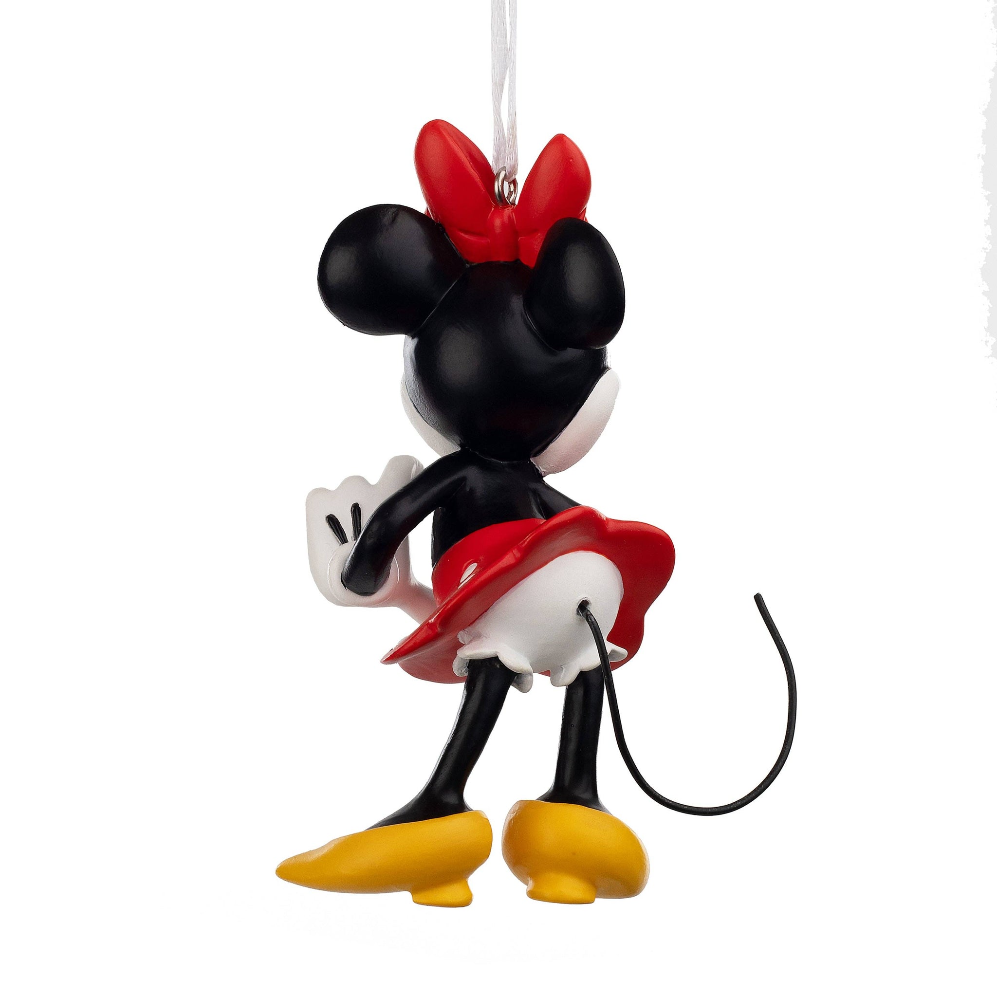 Add a touch of Disney magic to any celebration with this delightful Minnie Mouse Hanging Ornament. Made from durable resin, it features Minnie winking and forming a heart with her fingers, complete with a hanging loop and white ribbon for easy display on a Christmas tree or in a Disney collection.